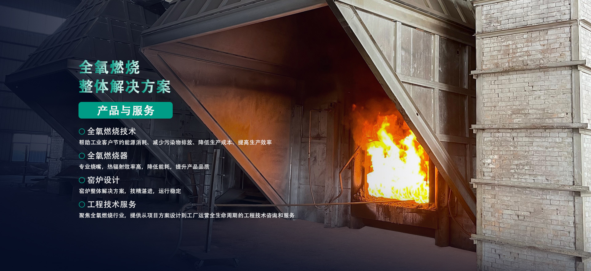 提供方案:成套熱能解決方案。高溫領(lǐng)域,采用富氧或全氧燃燒系統(tǒng),包括窯爐控制系統(tǒng)、全氧燃燒閥組、燒槍組件等